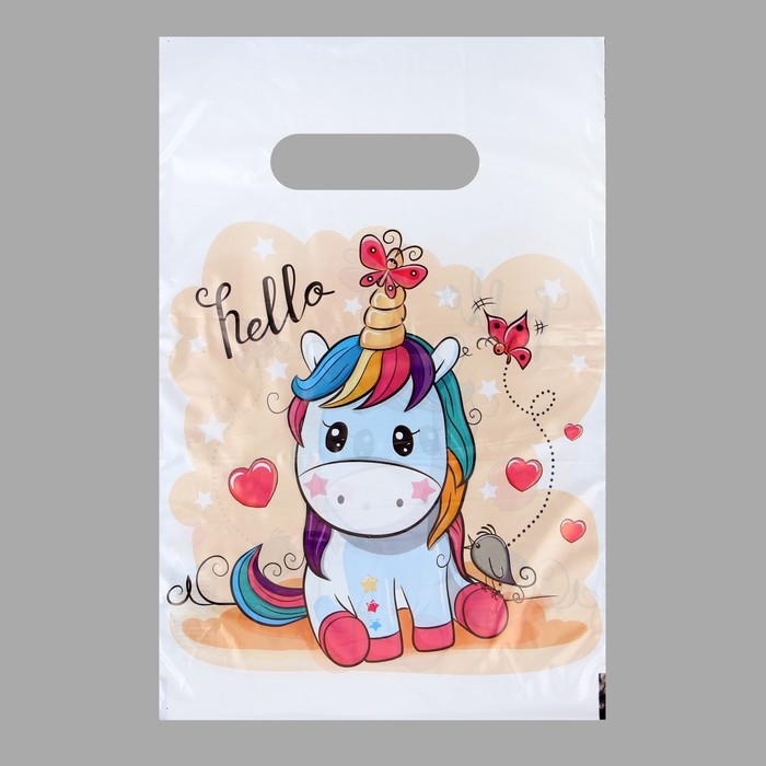 Пакет "hello единорог", полиэтилен. с вырубн ручкой,20 х 30 см,30 мкм набор 20 штук
