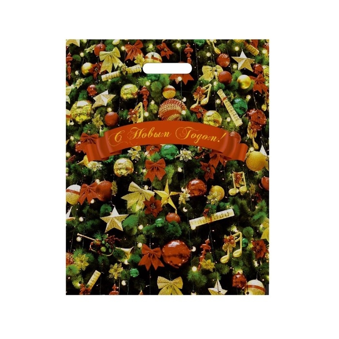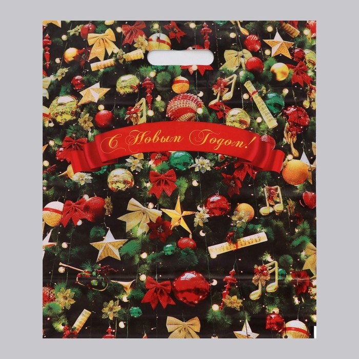 Пакет "Новогодние игрушки", полиэтиленовый с вырубной ручкой, 38х47 см, 60 мкм набор 5 штук