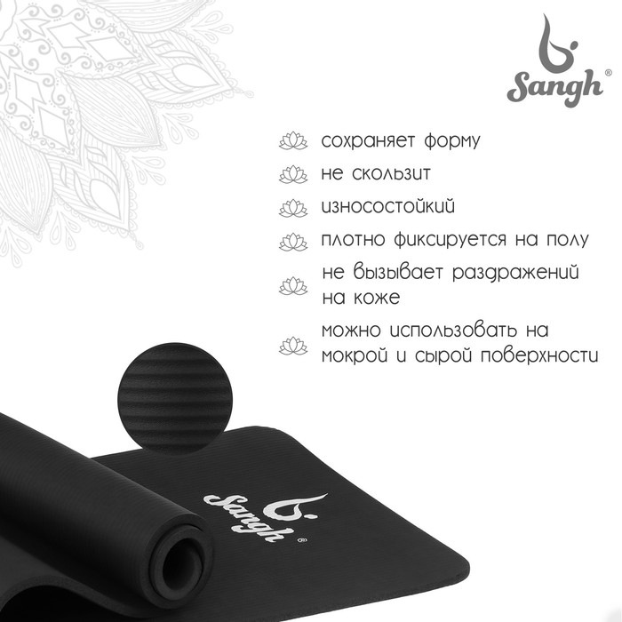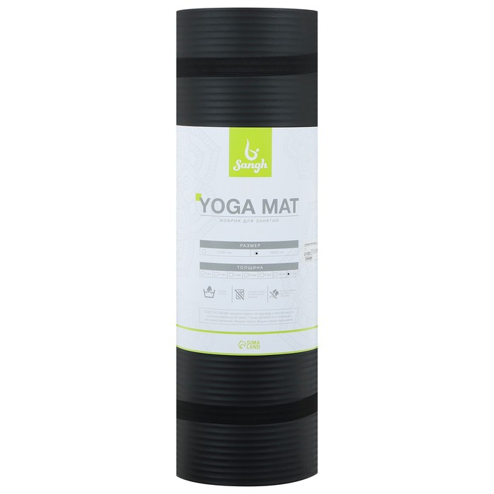 Коврик для йоги Sangh, 183×61×1 см, цвет чёрный