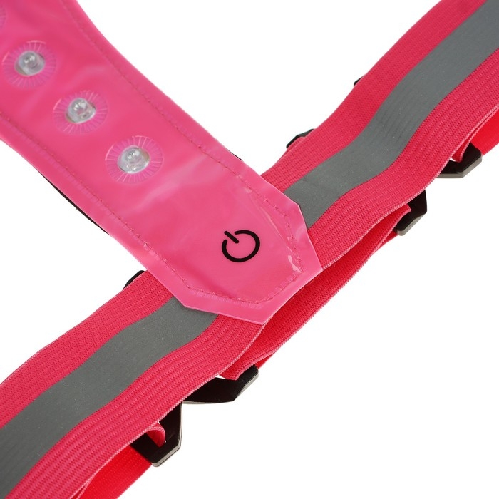 Жилет сигнальный, светоотражающий с регулируемым размером, розовый, LED сигнал, 4 режима