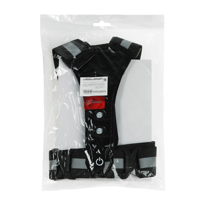 Жилет сигнальный, светоотражающий с регулируемым размером, черный, LED сигнал, 4 режима