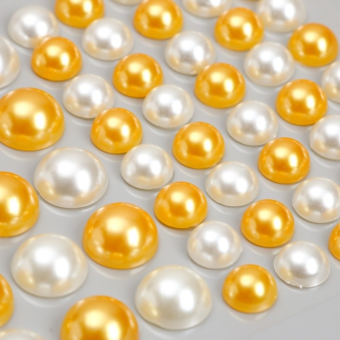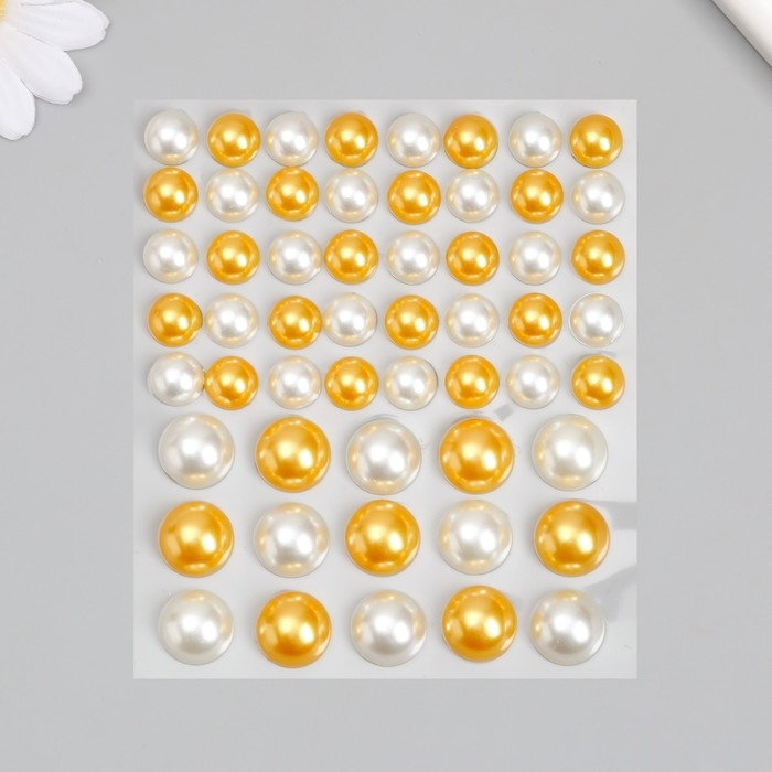 Наклейка пластик стразы "Полужемчужины разных размеров" белые и оранжевые9,5х11 см