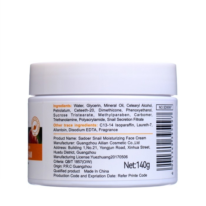Крем для лица, увлажняющий, с экстрактом улитки, 140 г