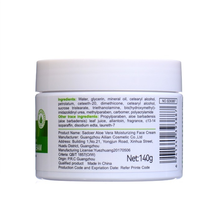 Крем для лица, увлажняющий, с экстрактом алоэ вера, 140 г