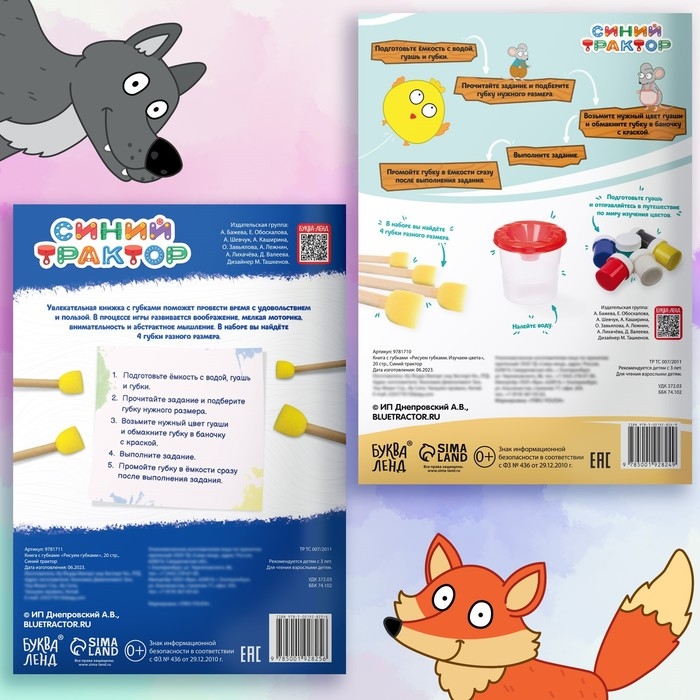 Набор «Рисуем губками»: 2 книги по 20 стр., А4, + 8 губок, Синий трактор