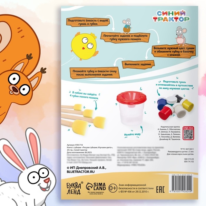 Набор «Рисуем губками. Изучаем цвета», книга 20 стр., А4, 4 губки, Синий трактор