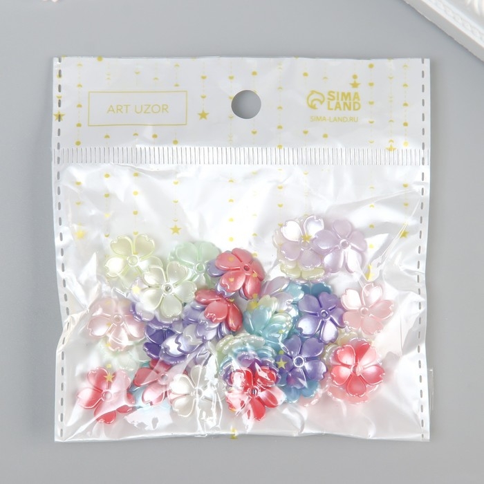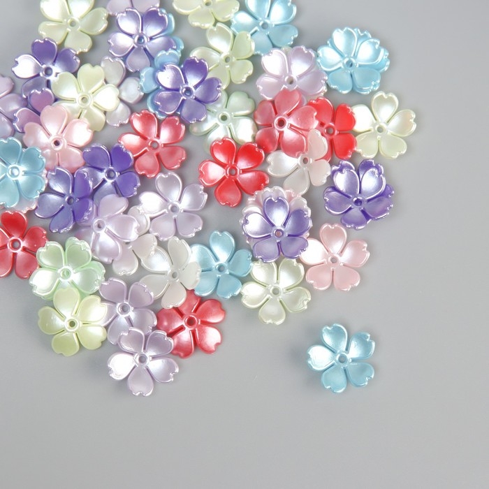 Бусины для творчества пластик "Цветочки" цветной перламутр набор 50 шт 1,5х1,5х0,4 см