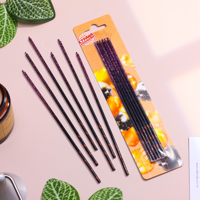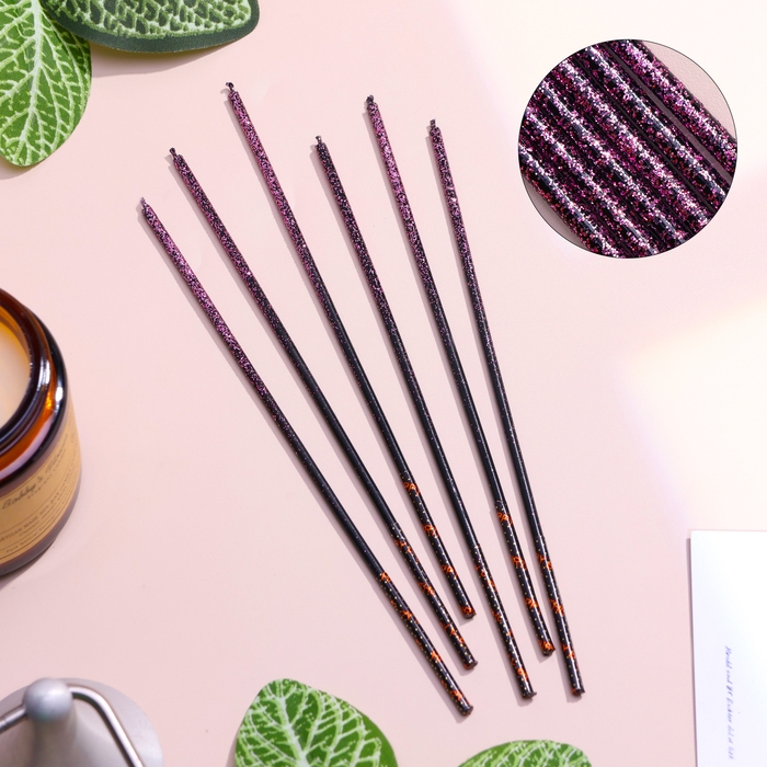 Набор свечей в торт, 6 штук "Сияние", розовый с чёрным, 17 см