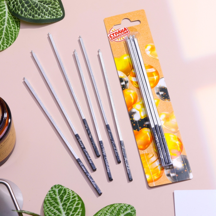 Набор свечей в торт, 6 штук "Серебро", 15 см