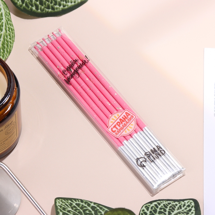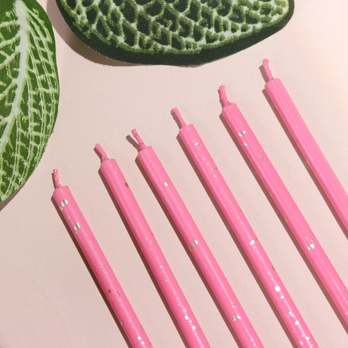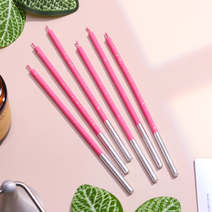 Набор свечей в торт, 6 штук "Исполнение желаний", 15 см, фуксия