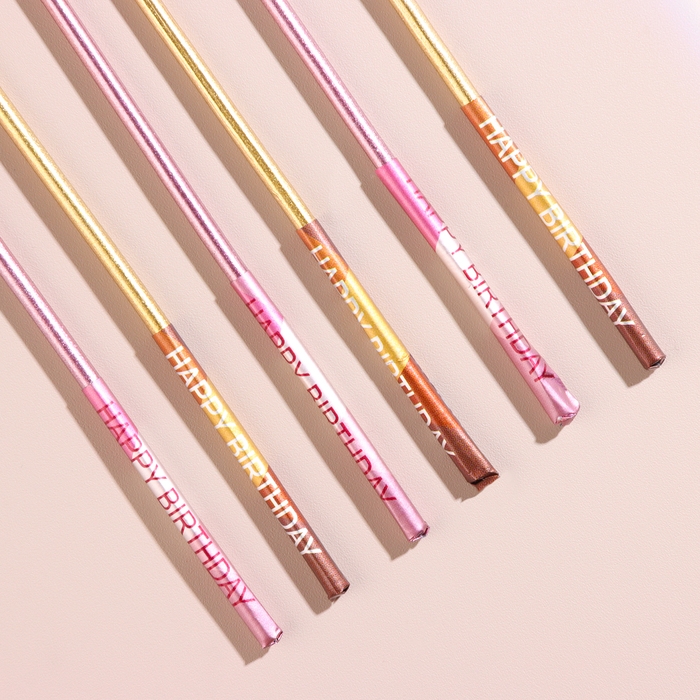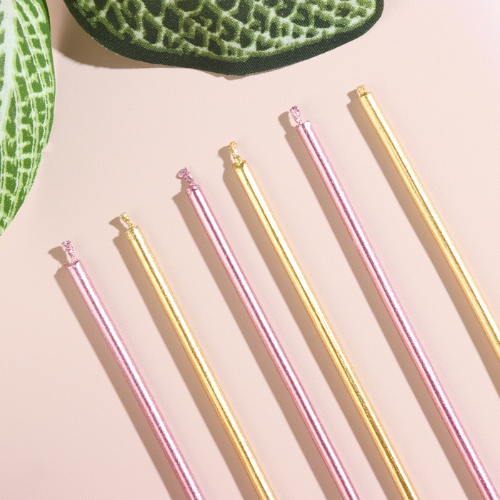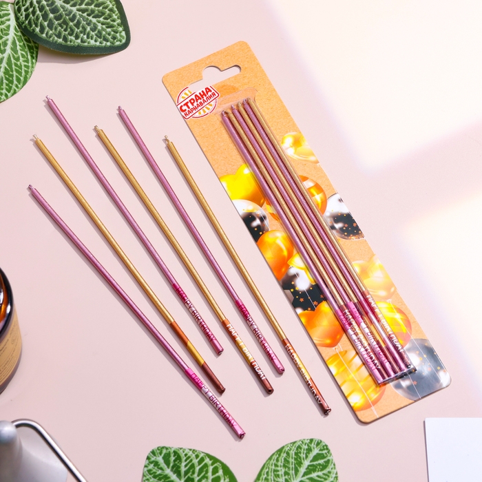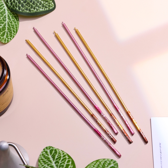 Набор свечей в торт, 6 штук "Happy", 17 см, золотой с розовым