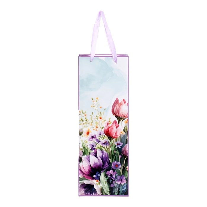 Пакет ламинированный под бутылку "Акварельные цветы",13 х 36 х 10 см