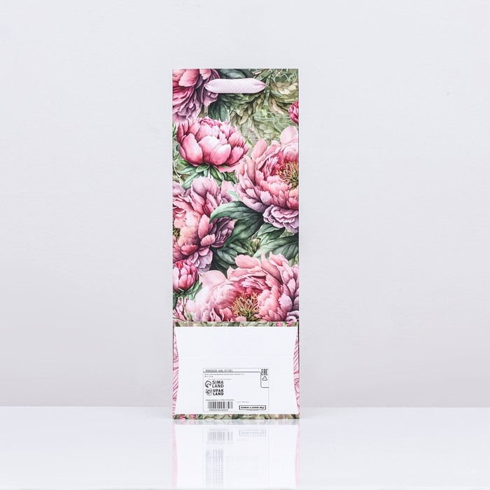 Пакет ламинированный под бутылку "Пионы",13 х 36 х 10 см