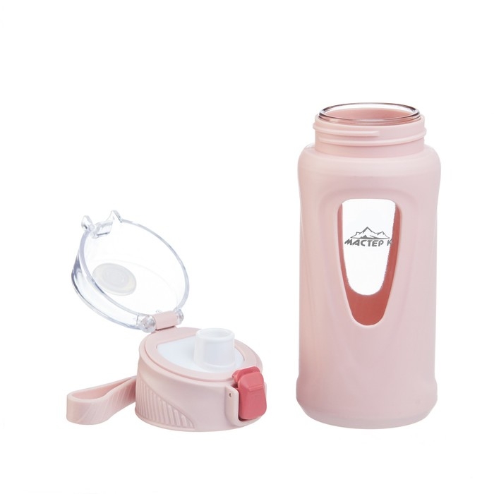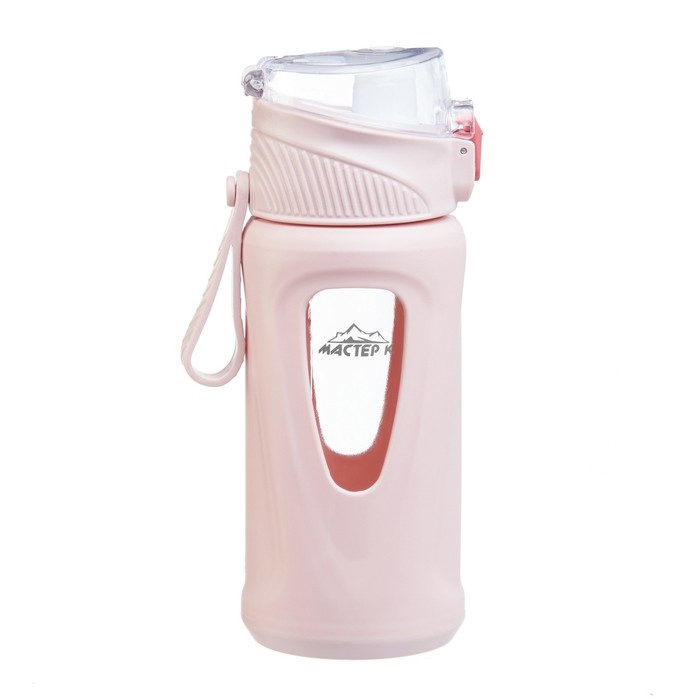 Бутылка для воды, 400 мл, 19.5 х 7 х 5.2 см, стеклянная, розовая