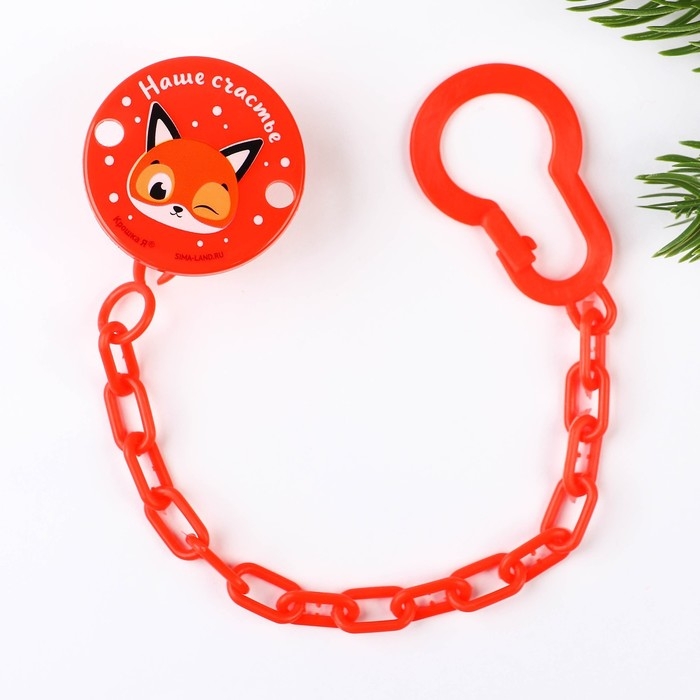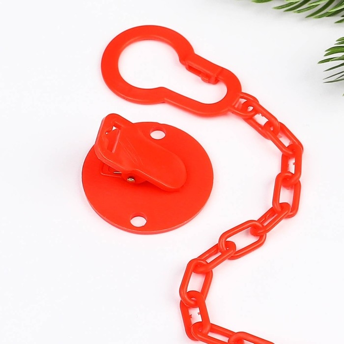 Изделие фиксируется на одежде ребёнка. На конце цепочки есть карабин, который зацепляется за кольцо пустышки. Надёжное крепление убережёт вещь от падения на пол, если малютка случайно выронит её изо рта.