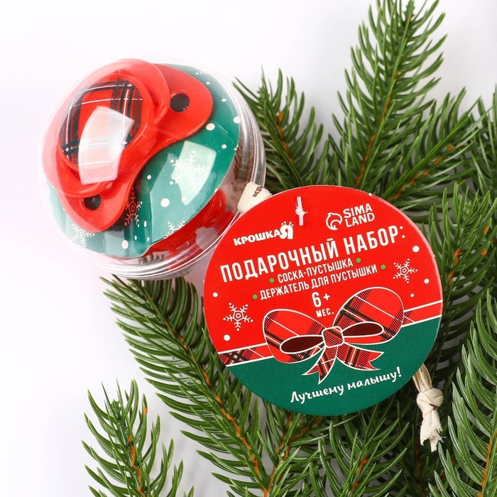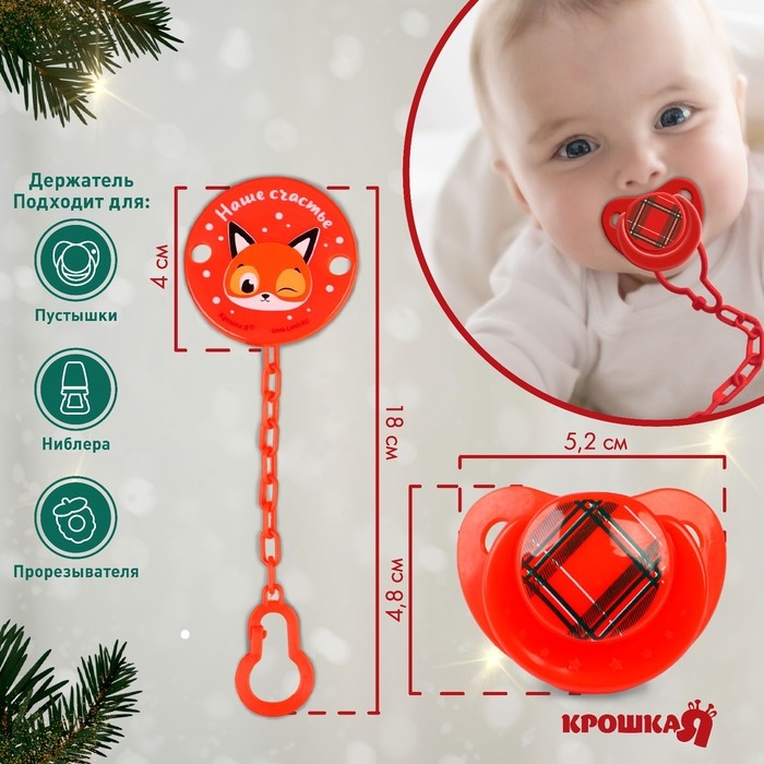 Подарочный набор новогодний: соска-пустышка ортодонт., +6 мес., и держатель на цепочке «Наше счастье» в шаре, подарочная упаковка, Крошка Я