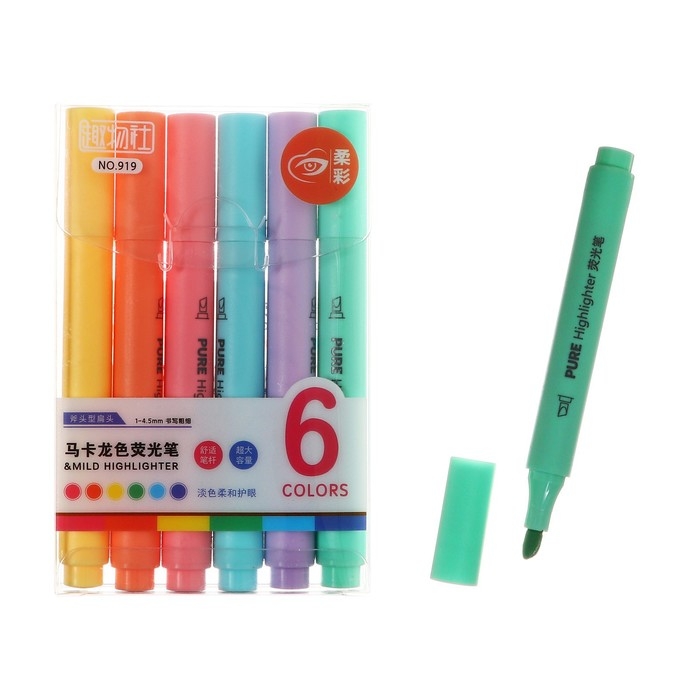 Набор маркеров-тестовыделителей 6 штук, 6 цветов, Пастель