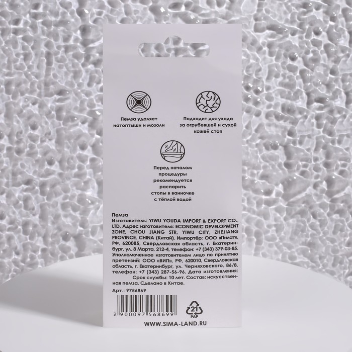 Пемза для педикюра, 10 × 6 см, в коробке, цвет МИКС