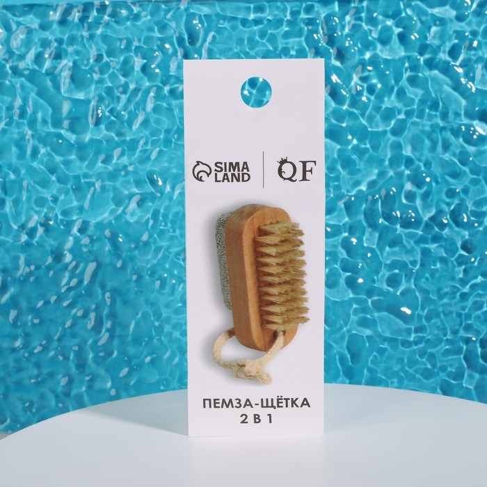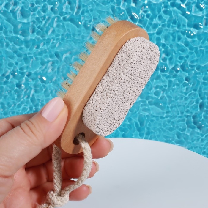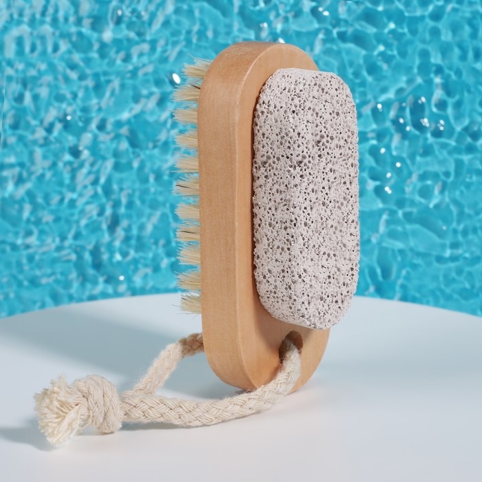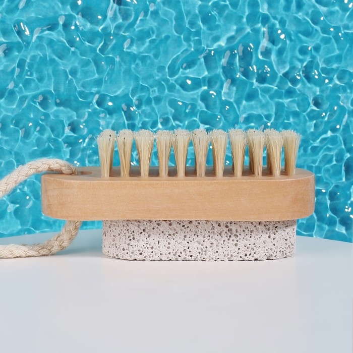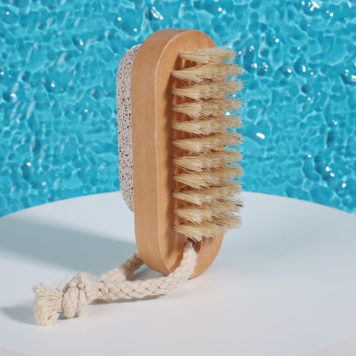 Пемза для педикюра с щёткой, с подвесом, натуральная щетина, 9,5 × 4 см, в коробке, цвет бежевый