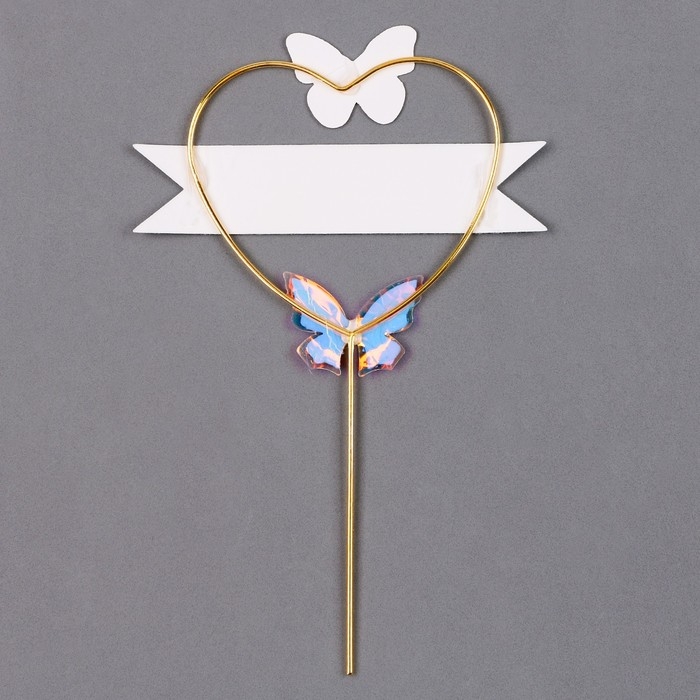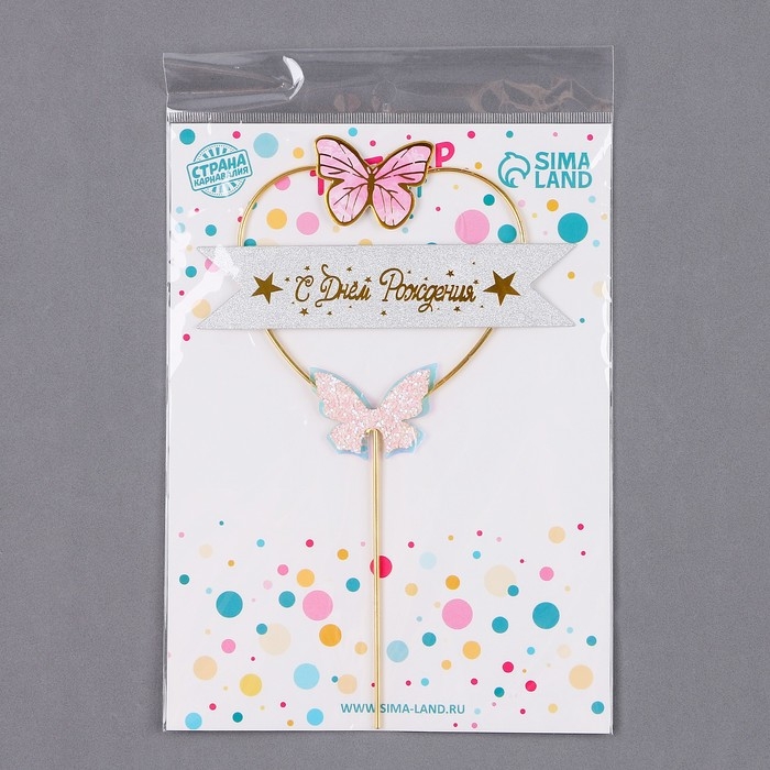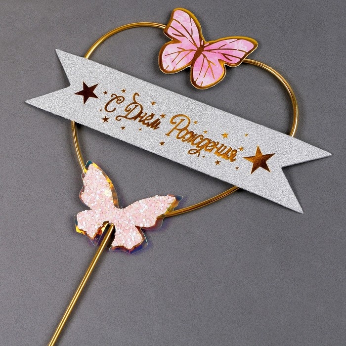 Топпер «С днём рождения», бабочки в сердце, цвет розовый