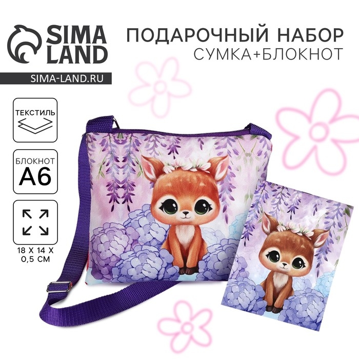 Набор подарочный для девочки "Олененок", сумка, блокнот