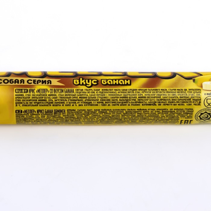 Легендарный ирис Meller со вкусом банана – это изысканное сочетание тягучего ириса, шоколадной начинки и банана. Попробуйте жевательные конфеты Meller и раскройте новые необыкновенные вкусовые сочетания. Благодаря компактному формату ролла ирис можно брать с собой.