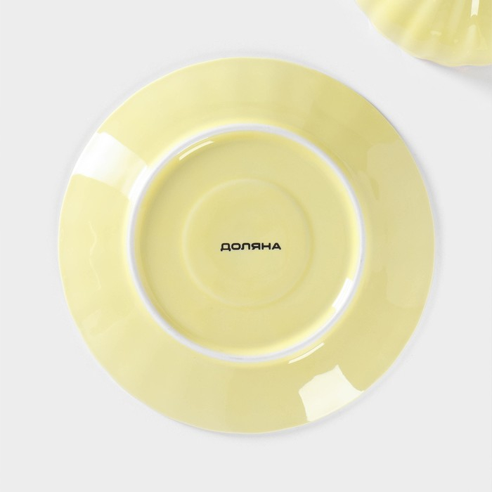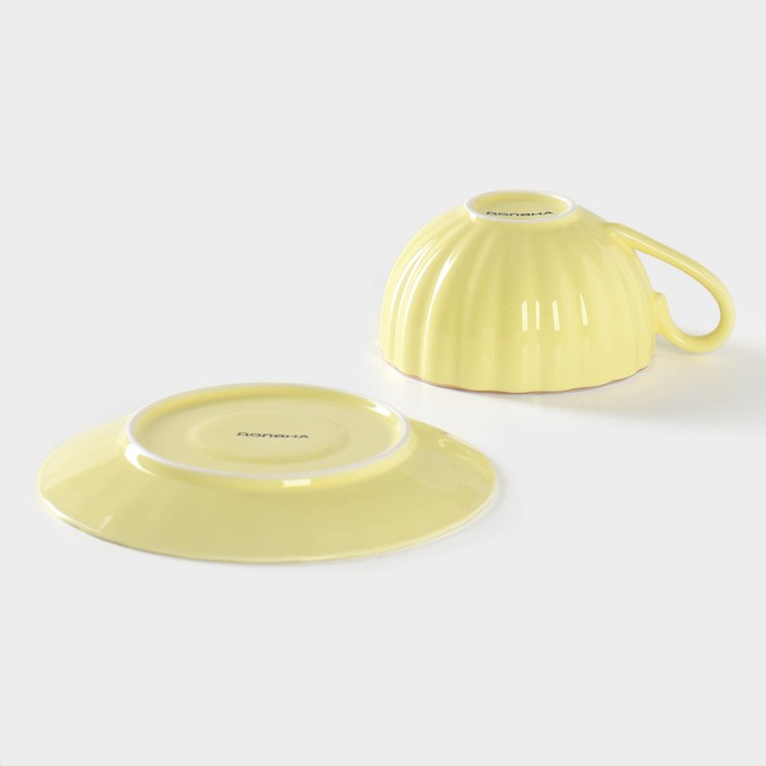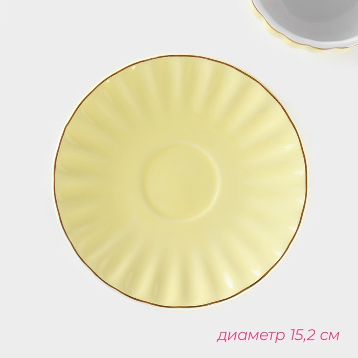Чайная пара фарфоровая Доляна «Вивьен», 2 предмета: чашка 200 мл, блюдце d=15 см, цвет жёлтый
