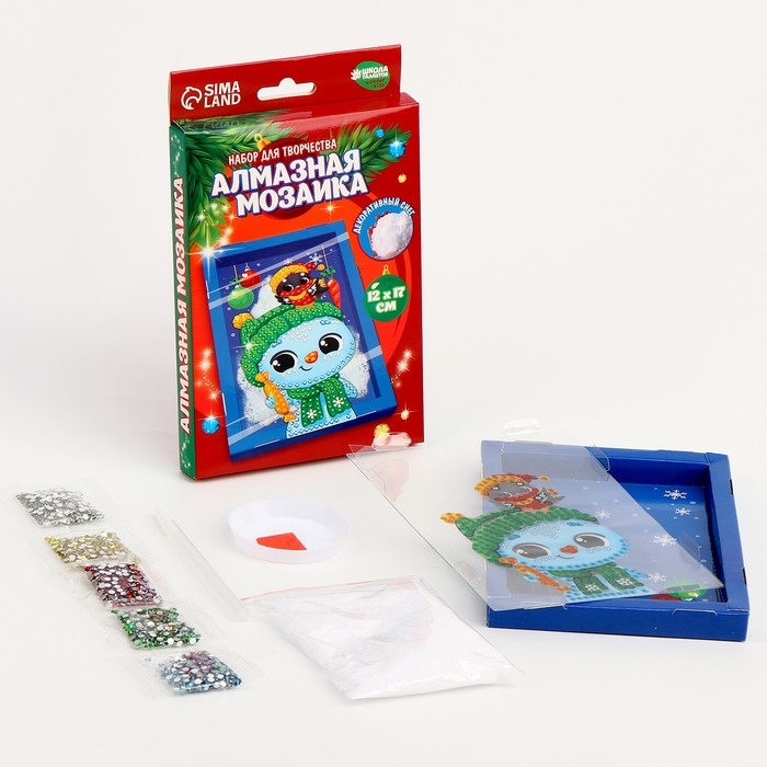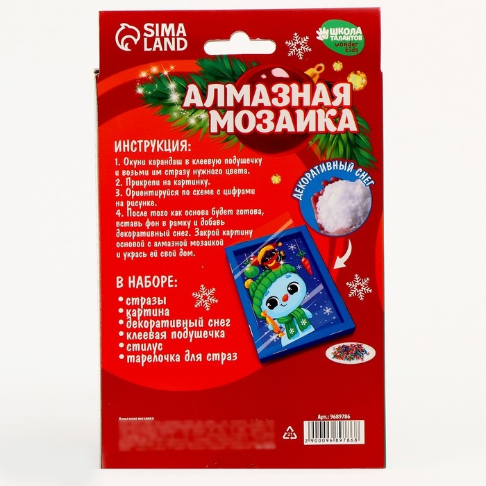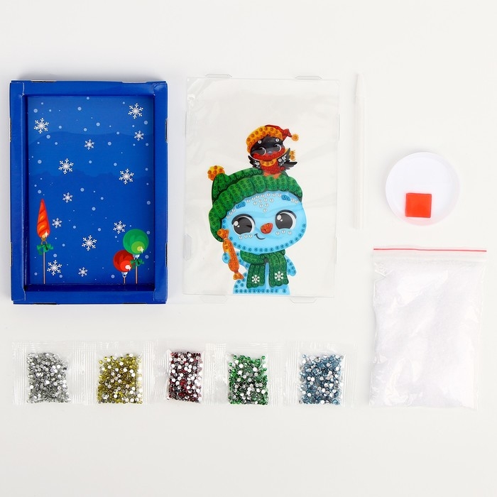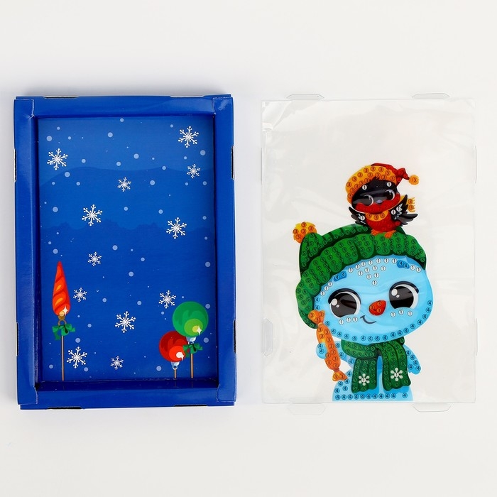 Алмазная мозаика на новый год для детей с частичным заполнением в рамке с растущим снегом «Снеговик», новогодний набор для творчества