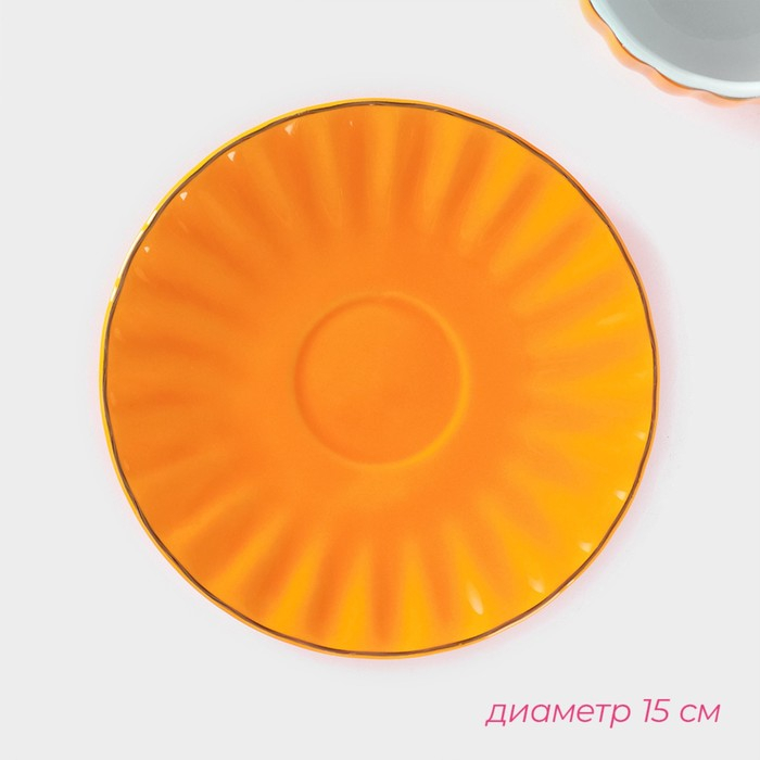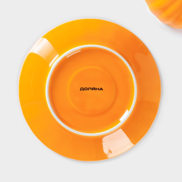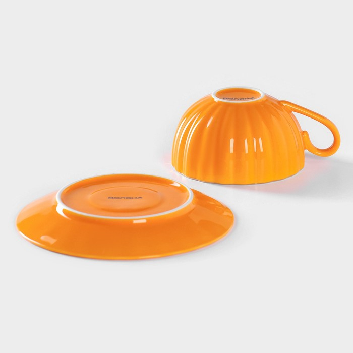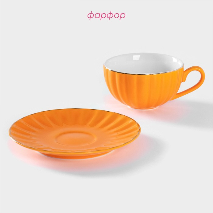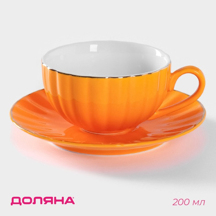 Чайная пара фарфоровая Доляна «Вивьен», 2 предмета: чашка 200 мл, блюдце d=15 см, цвет оранжевый