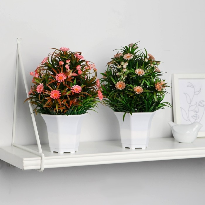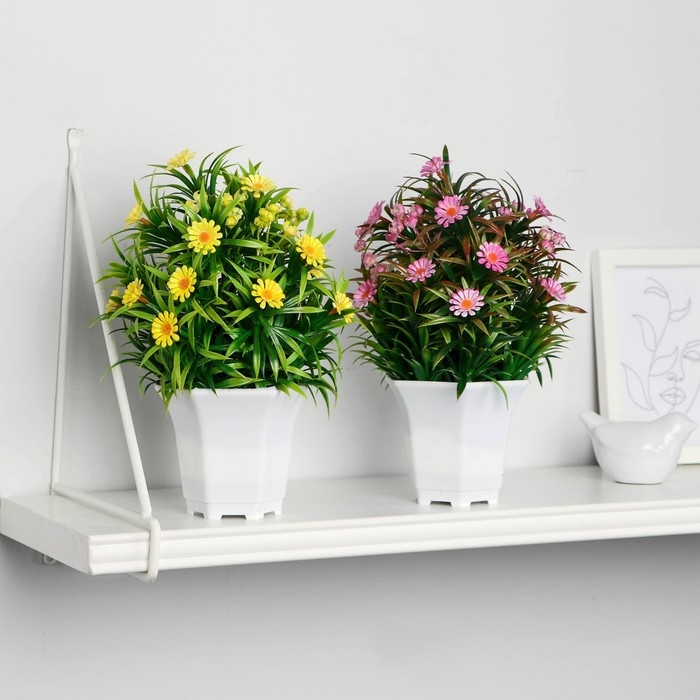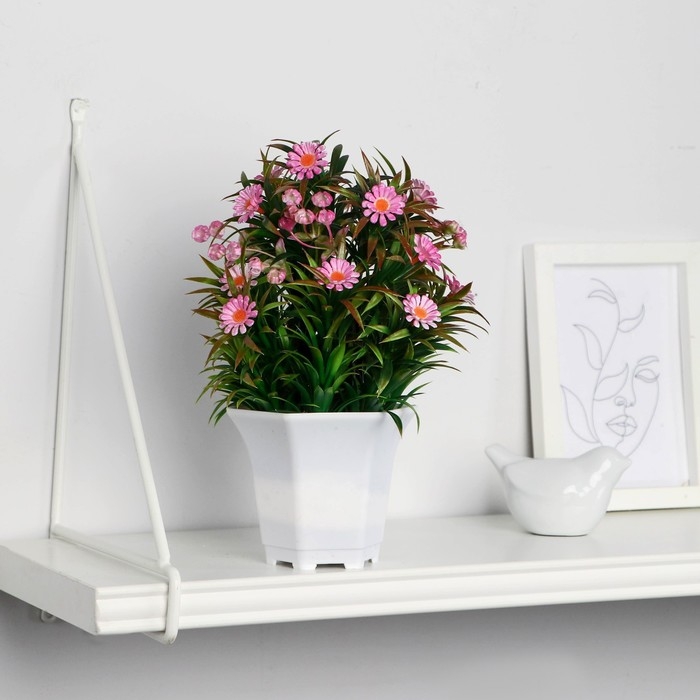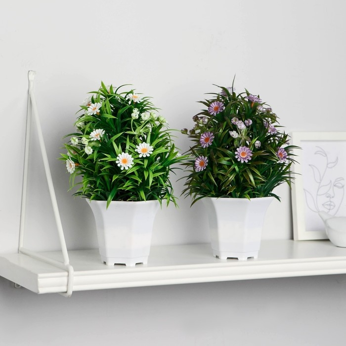 Бонсай в горшке "Ромашка нивяник" 11х22 см, микс