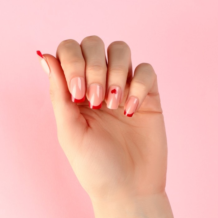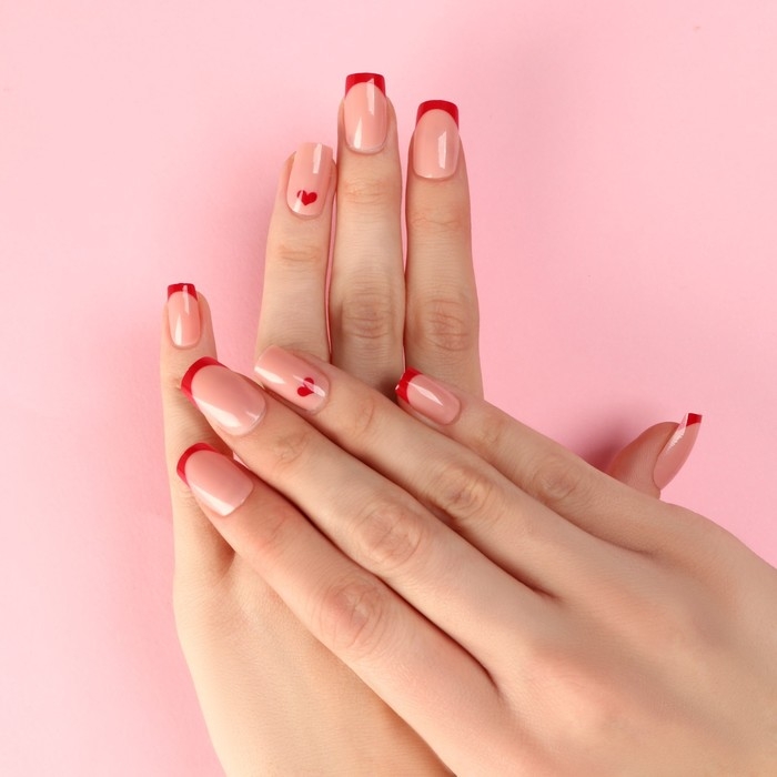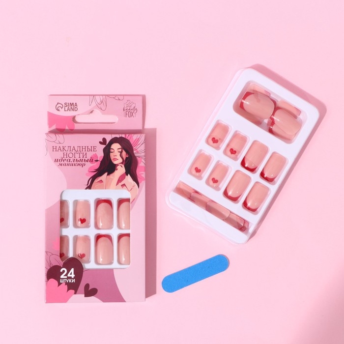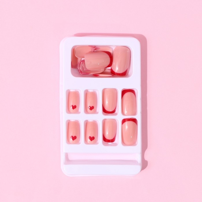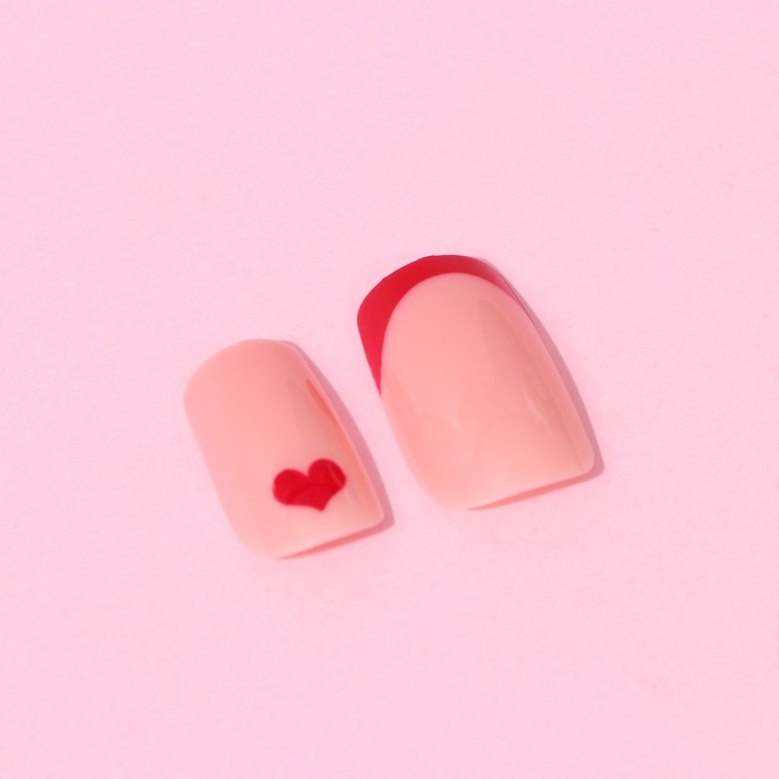 Накладные ногти «Любовь», 24 шт, клеевые пластины, форма квадрат, цвет глянцевый розовый/красный