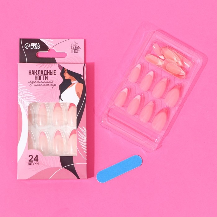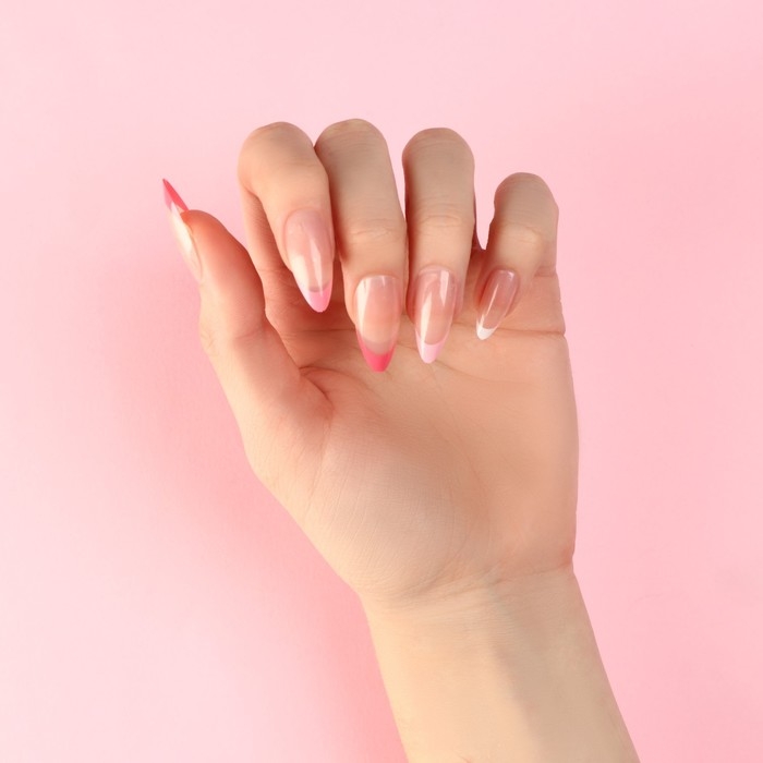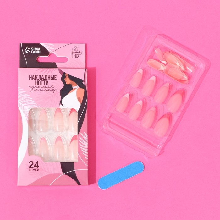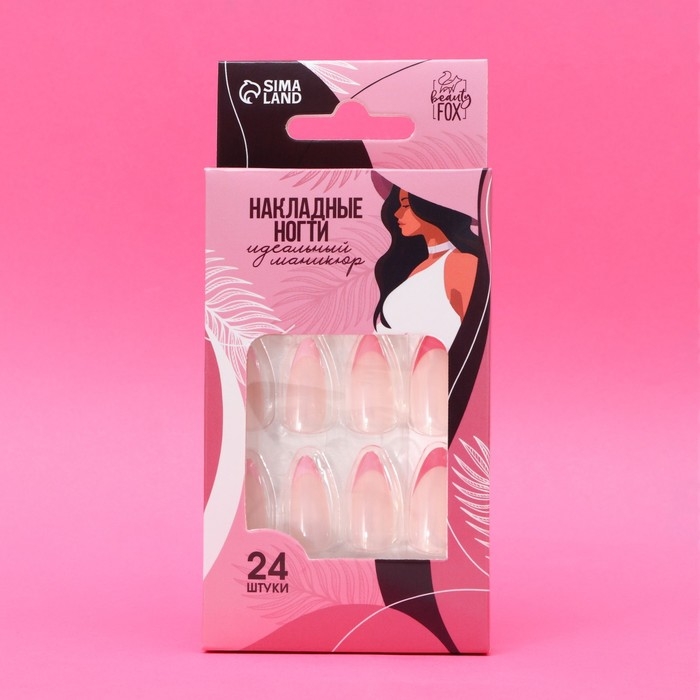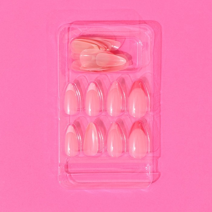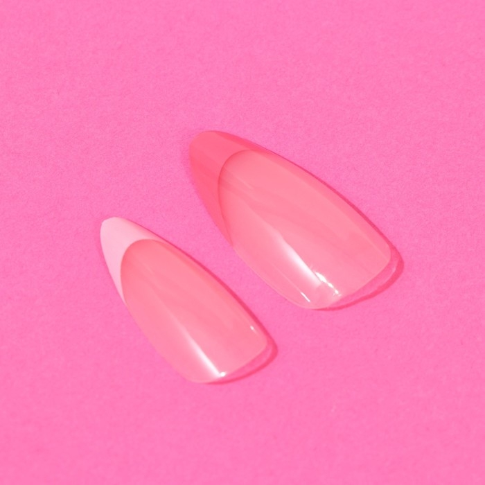 Накладные ногти «Цветной френч», 24 шт, клеевые пластины, форма миндаль, цвет глянцевый розовый/белый