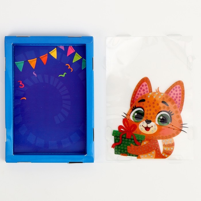 Алмазная мозаика на новый год в рамке для детей «Котик с подарком», новогодний набор для творчества