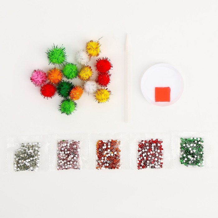 - Из пакетика с номером, который соответствует схеме, отсыпьте в ёмкость немного стразов.