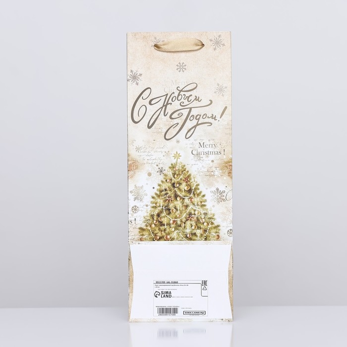 Новый год. Пакет подарочный новогодний ламинированный под бутылку "Ель",13 х 36 х 10 см.