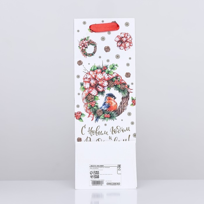 Новый год. Пакет подарочный новогодний ламинированный под бутылку "Новогодний венок",13 х 36 х 10 см.