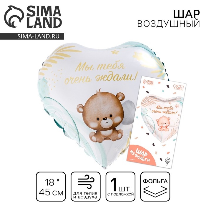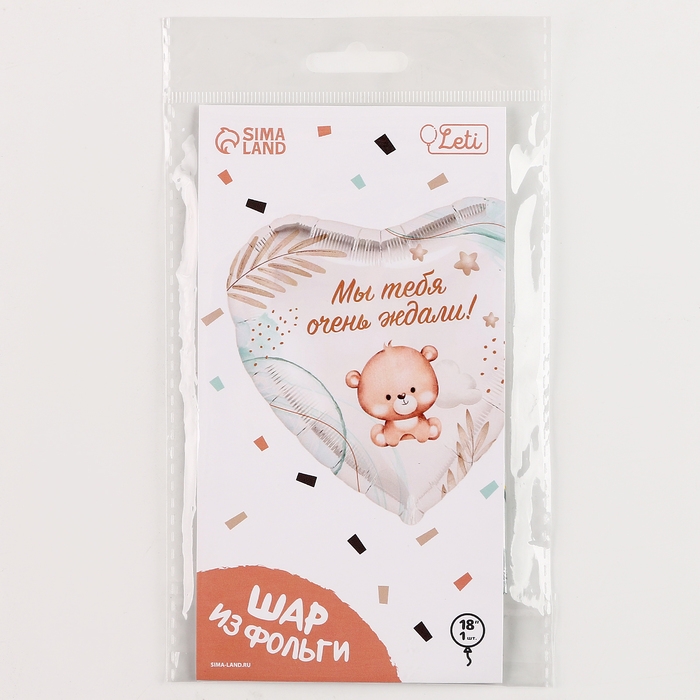 Воздушный шар фольгированный 18" «Мы тебя ждали» в форме сердца, с подложкой