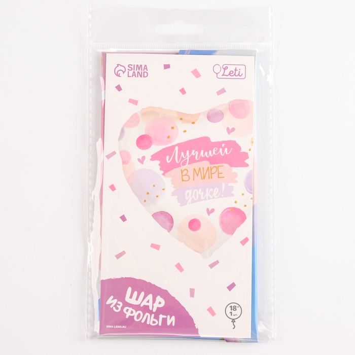 Воздушный шар фольгированный 18" «Лучшей в мире дочке» в форме сердца, с подложкой