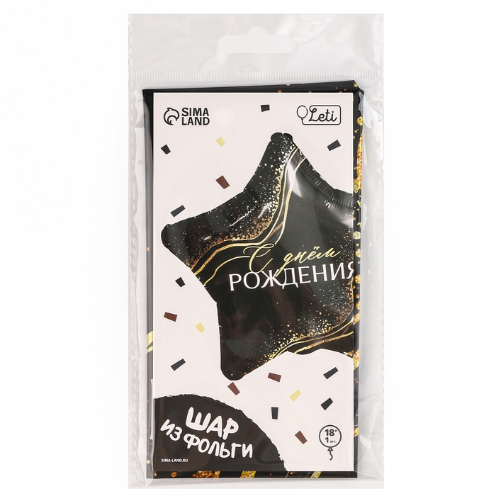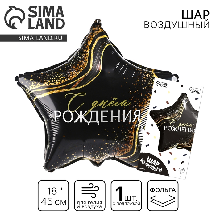Воздушный шар фольгированный 18" «С Днём Рождения» в форме звезды, с подложкой
