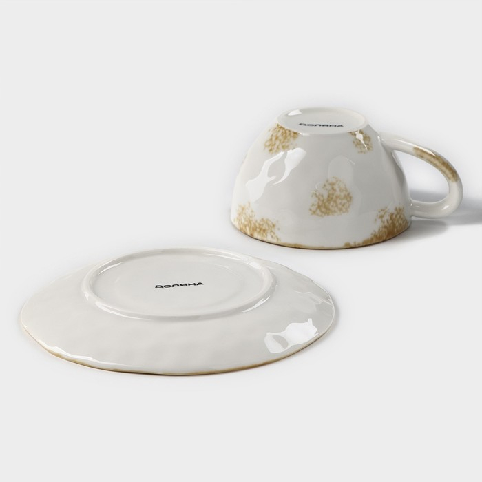 Чайная пара фарфоровая Доляна Organic Gold, 2 предмета: чашка 230 мл, блюдце d=16 см, цвет белый