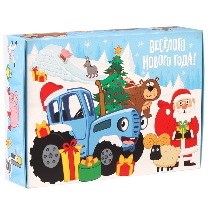Новый год. Коробка подарочная, "Весёлого Нового года", 21 х 15 х 5 см, Синий трактор