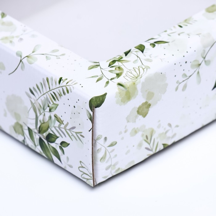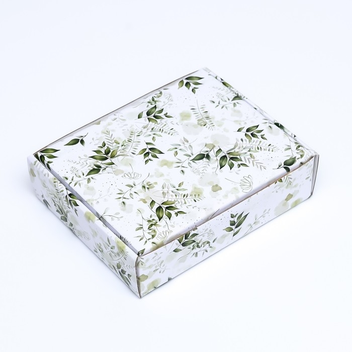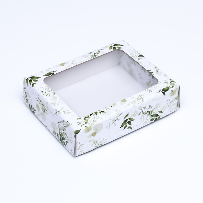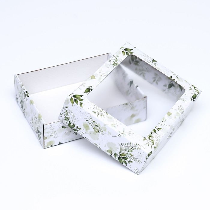 Коробка крышка-дно "Зеленые растения", с окном, 18 х 15 х 5 см