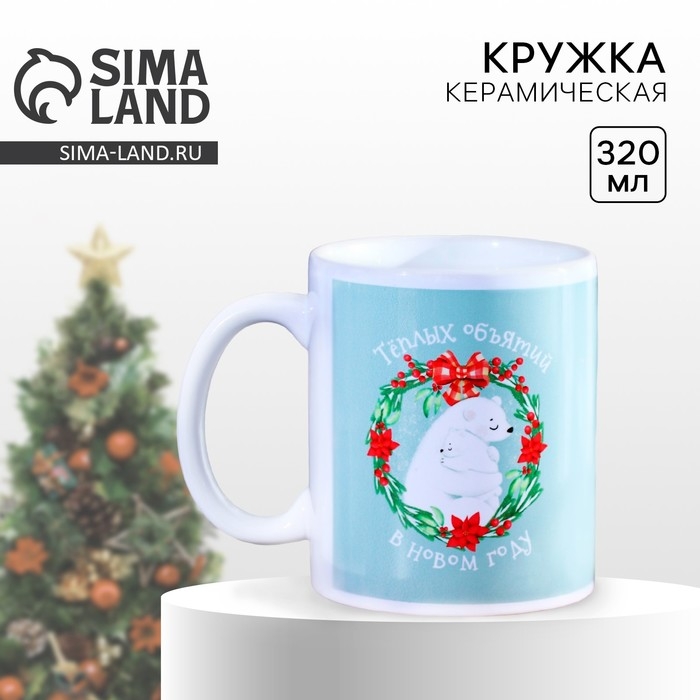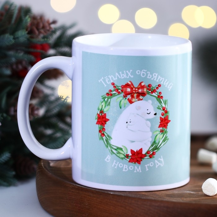 Кружка новогодняя керамическая «Уют», 320 мл, цвет голубой