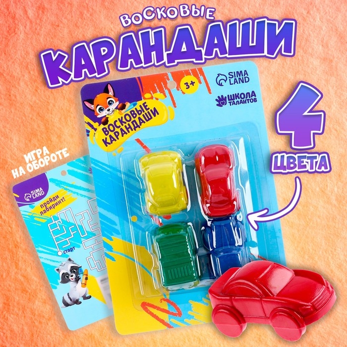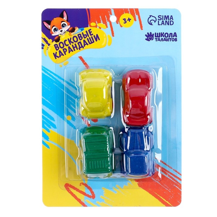 Восковые карандаши «Машины», набор 4 цвета
