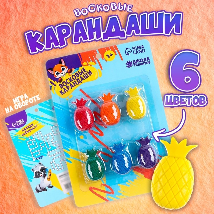 Восковые карандаши «Ананасы», набор 6 цветов