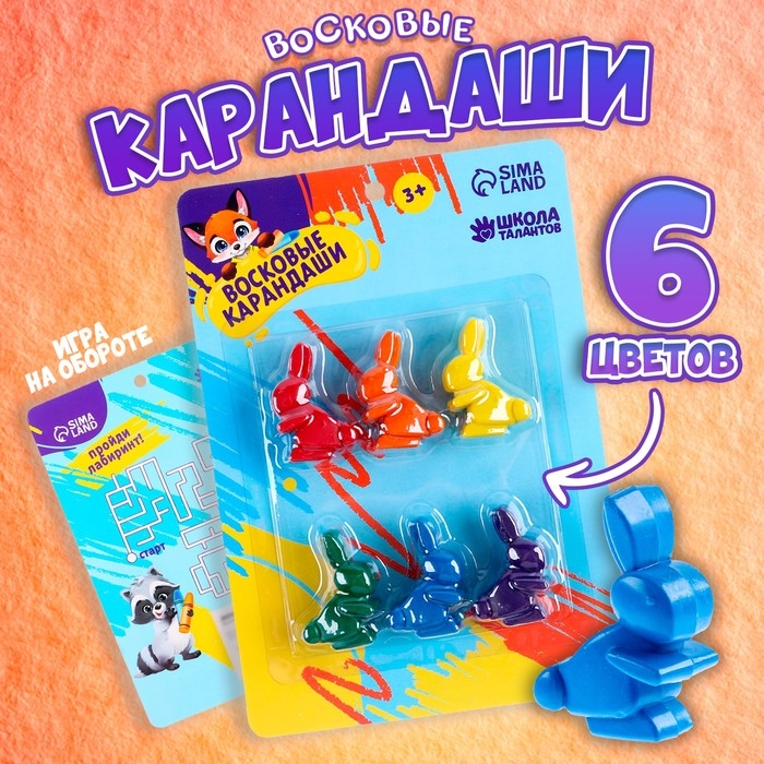 Восковые карандаши «Зайки», набор 6 цветов
