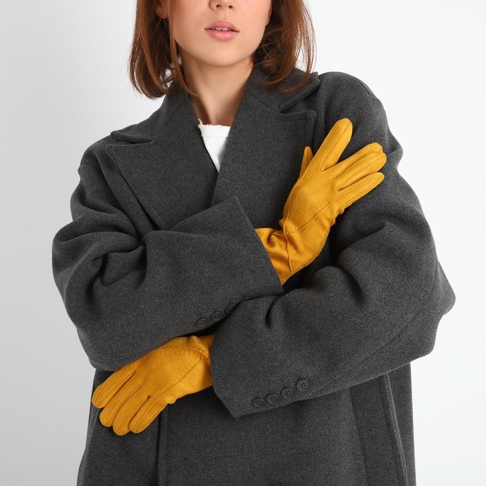 Перчатки женские, безразмерные, без утеплителя, цвет горчичный