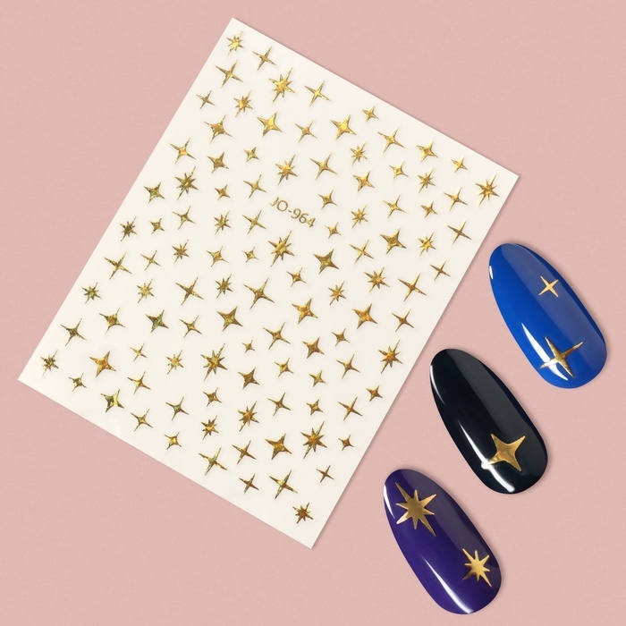 Наклейки для ногтей «Звезда», объёмные, фольгированные, цвет золотистый