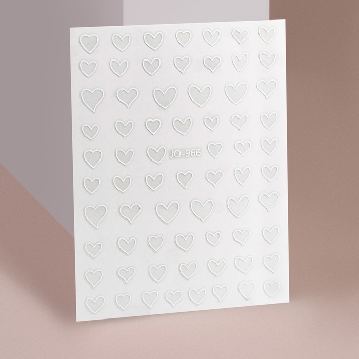 Наклейки для ногтей «Сердца», объёмные, цвет белый