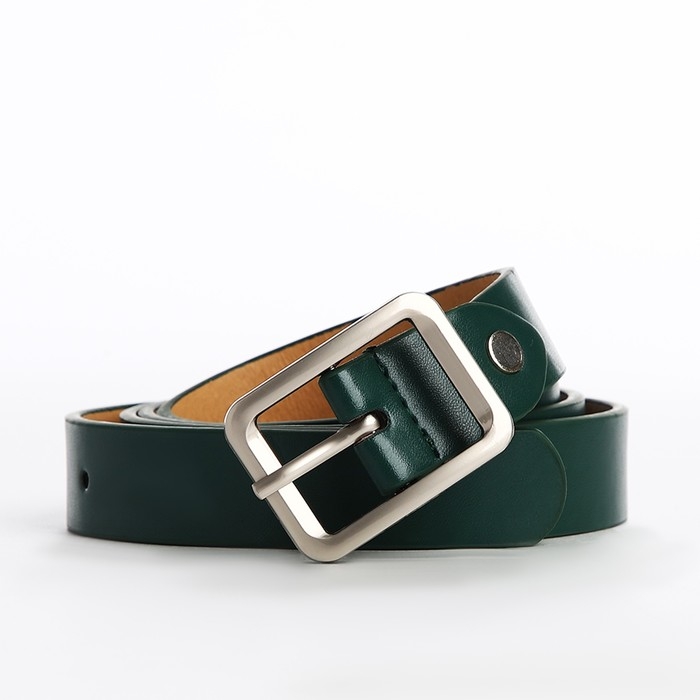 Ремень женский, ширина 2,4 см, винт, пряжка металл, цвет зелёный